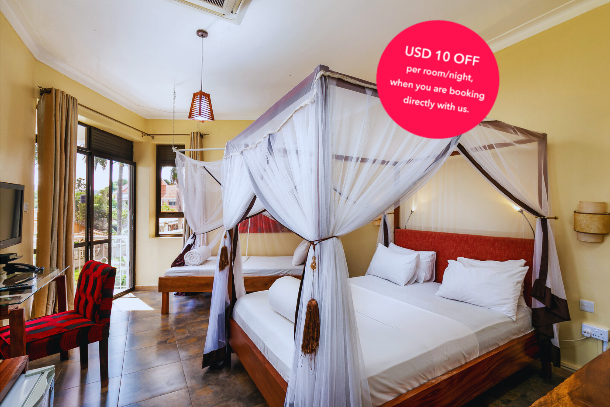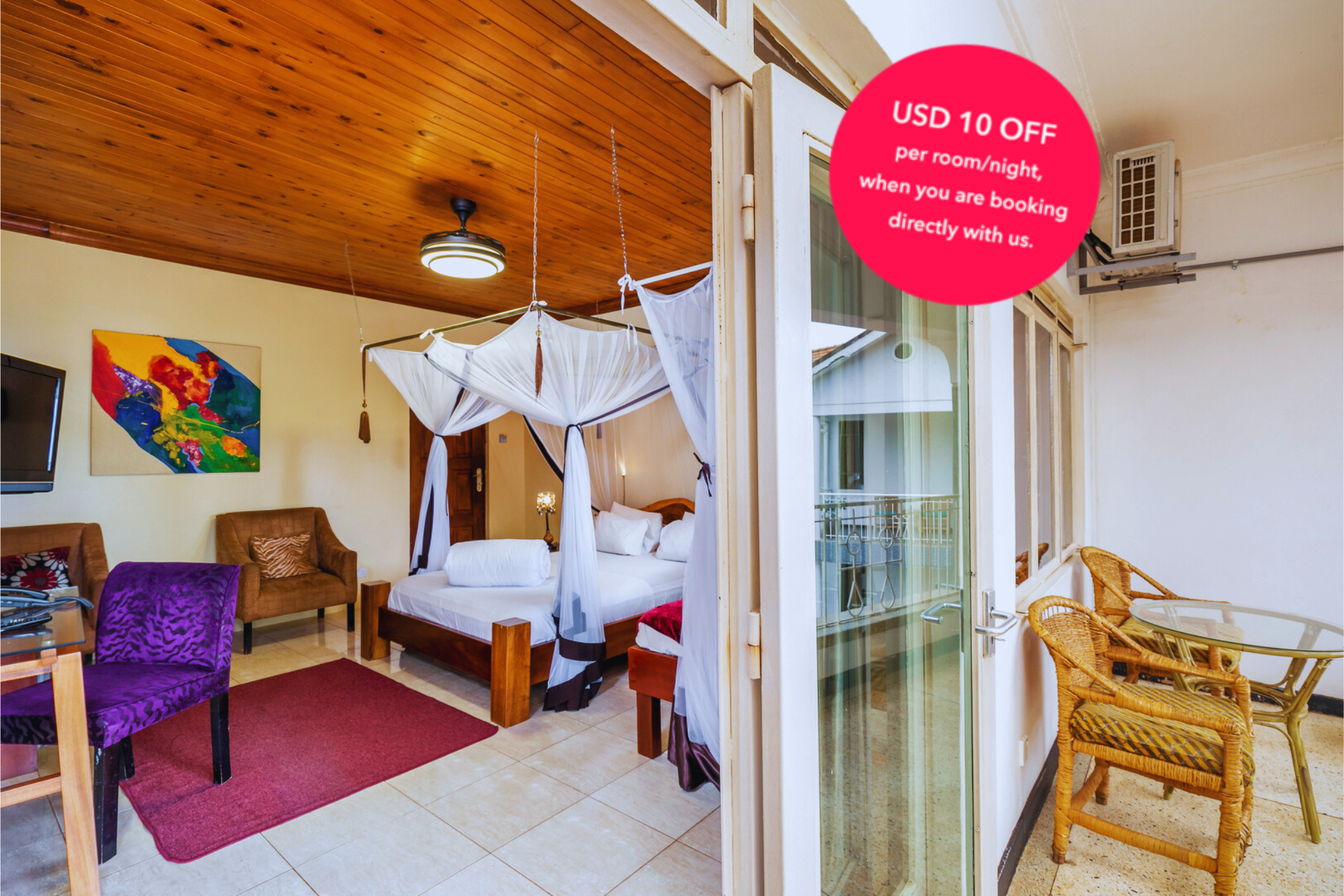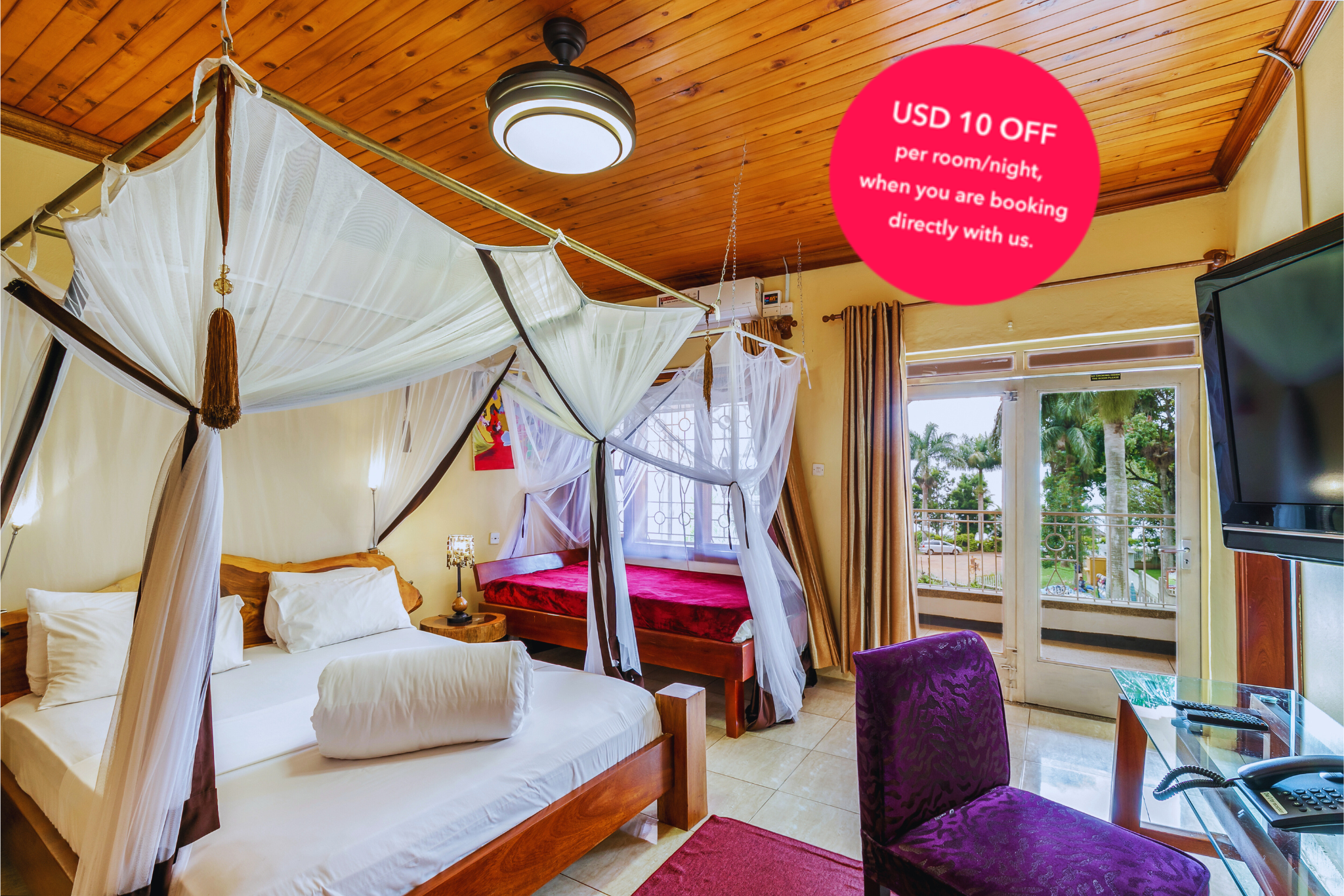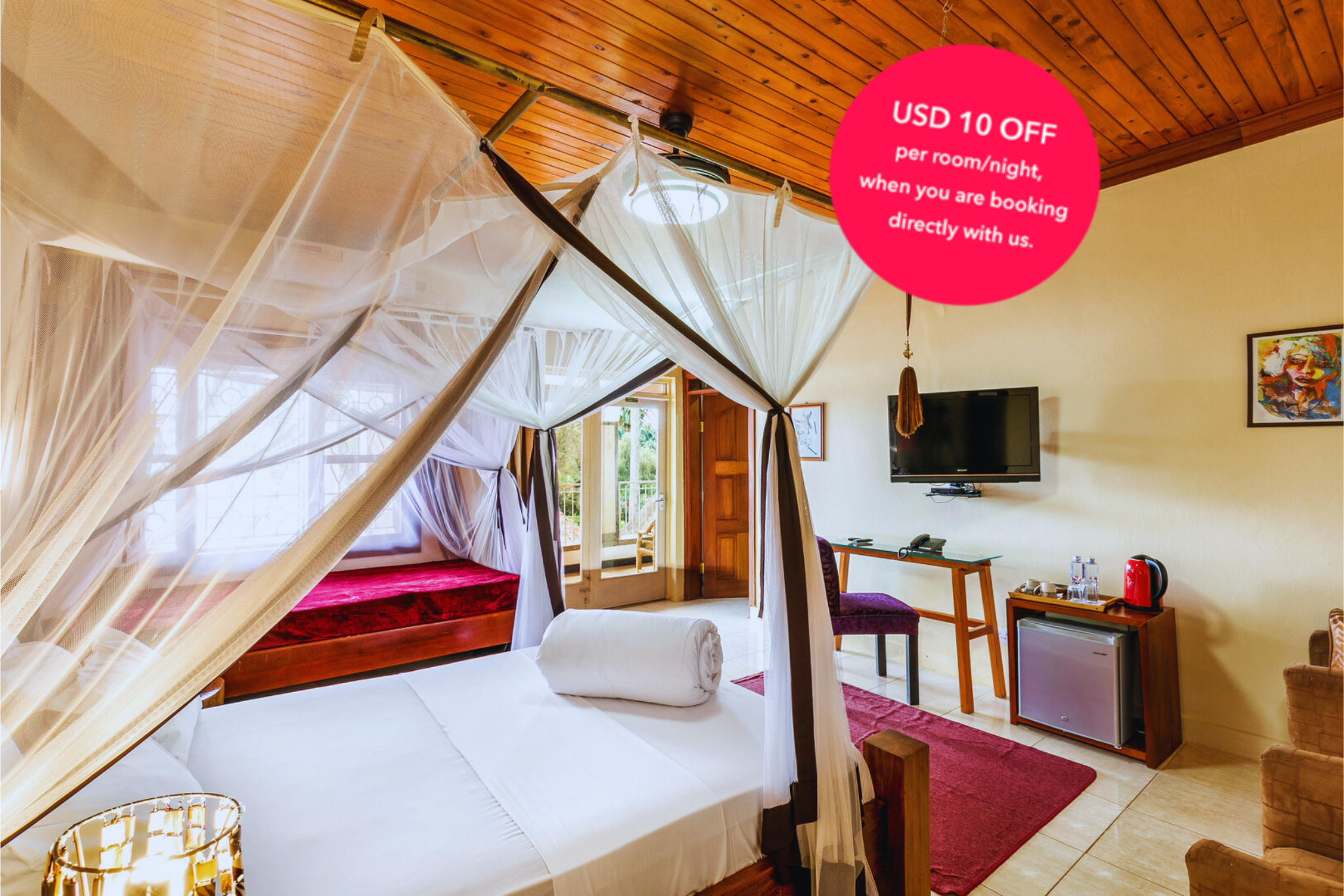 Wake up to a Lake Victoria sunrise. Indulge in an escape where tranquility meets luxury. Our Lake View Rooms offers a breathtaking, panoramic view framed by glass doors and your own furnished private balcony.